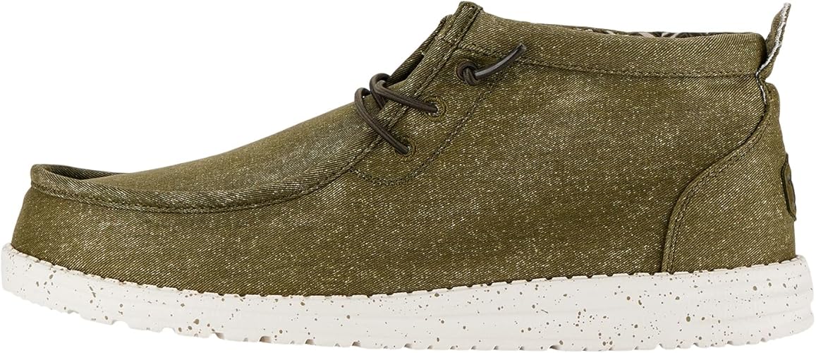 About this item Rounded Toe Design and Flex & Fold: This supports healthy feet with its unique shape giving complete freedom of movement. Lightweight with Elastic Laces: Manufactured using an elastic material that allows them to flex with the foot, resulting in a shoe that fits more uniformly. Each shoe weighs 6 ounces or less making it one of the lightest pairs of shoes around. Comfortable Durable High-Quality Material: Designed with you in mind. This Wally shoe boasts the comfort of walking on clouds. Featuring an insole that reduces odors, lightweight outsole, and breathable cotton fabric. Great For Travel & On The Go: The removable memory foam cushioned insole provides maximum comfort and reduces sweating and odors. Machine Washable Friendly (Cold). Sizing Tip: If you usually wear half sizes, we suggest choosing the next size up for the best overall fit. Shop with Confidence: Hey Dude products are backed by our 90-day manufacturer's warranty for high quality and authenticity. Terms and conditions apply